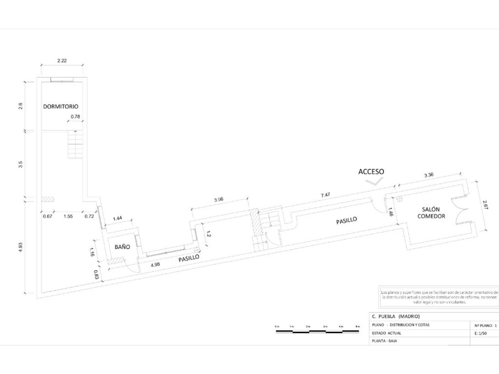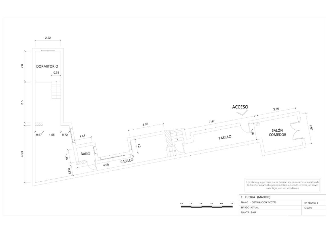 La vivienda se encuentra sin reformar. Consta de dos áreas distribuidos en planta calle y planta sótano.