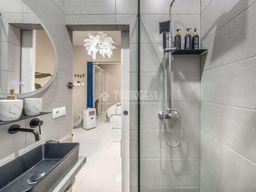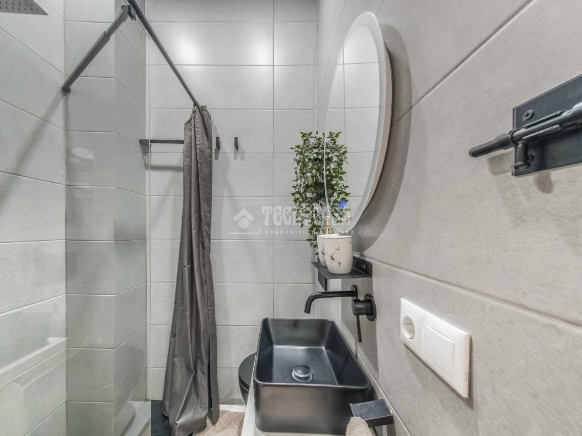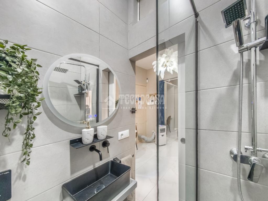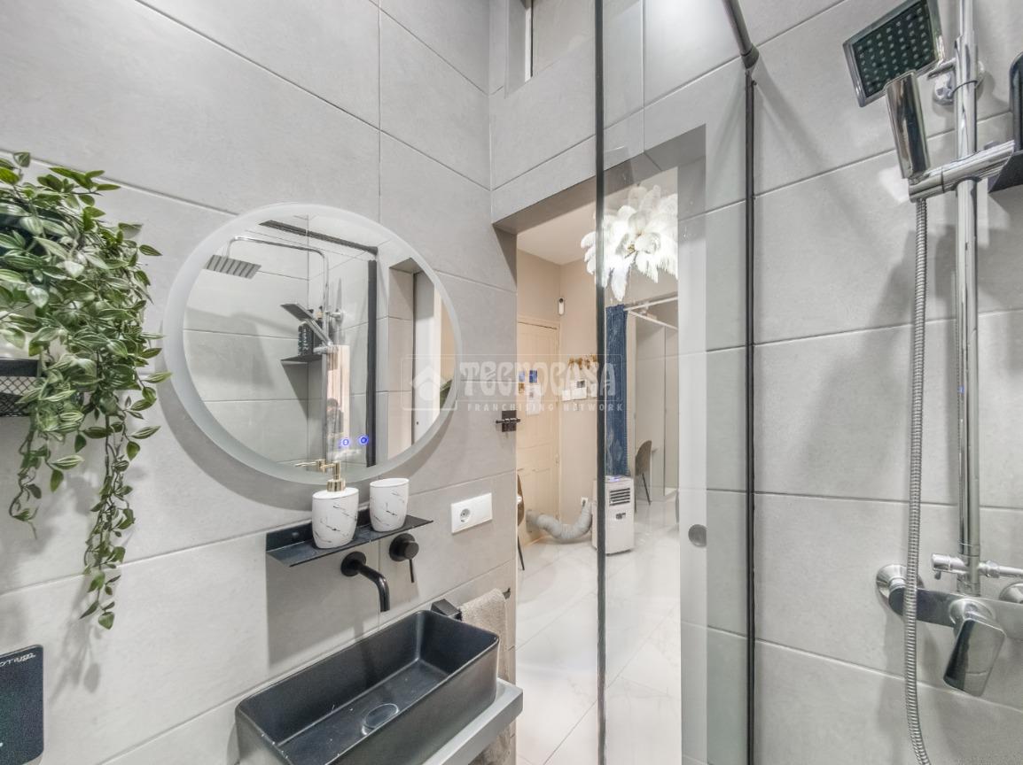 Dispone de un baño completo con plato de ducha. Con ventana estilo tragaluz hacia el salón.