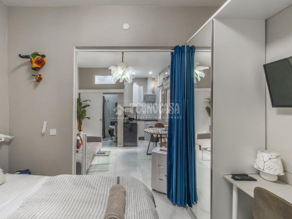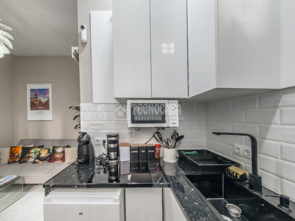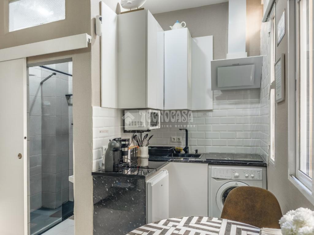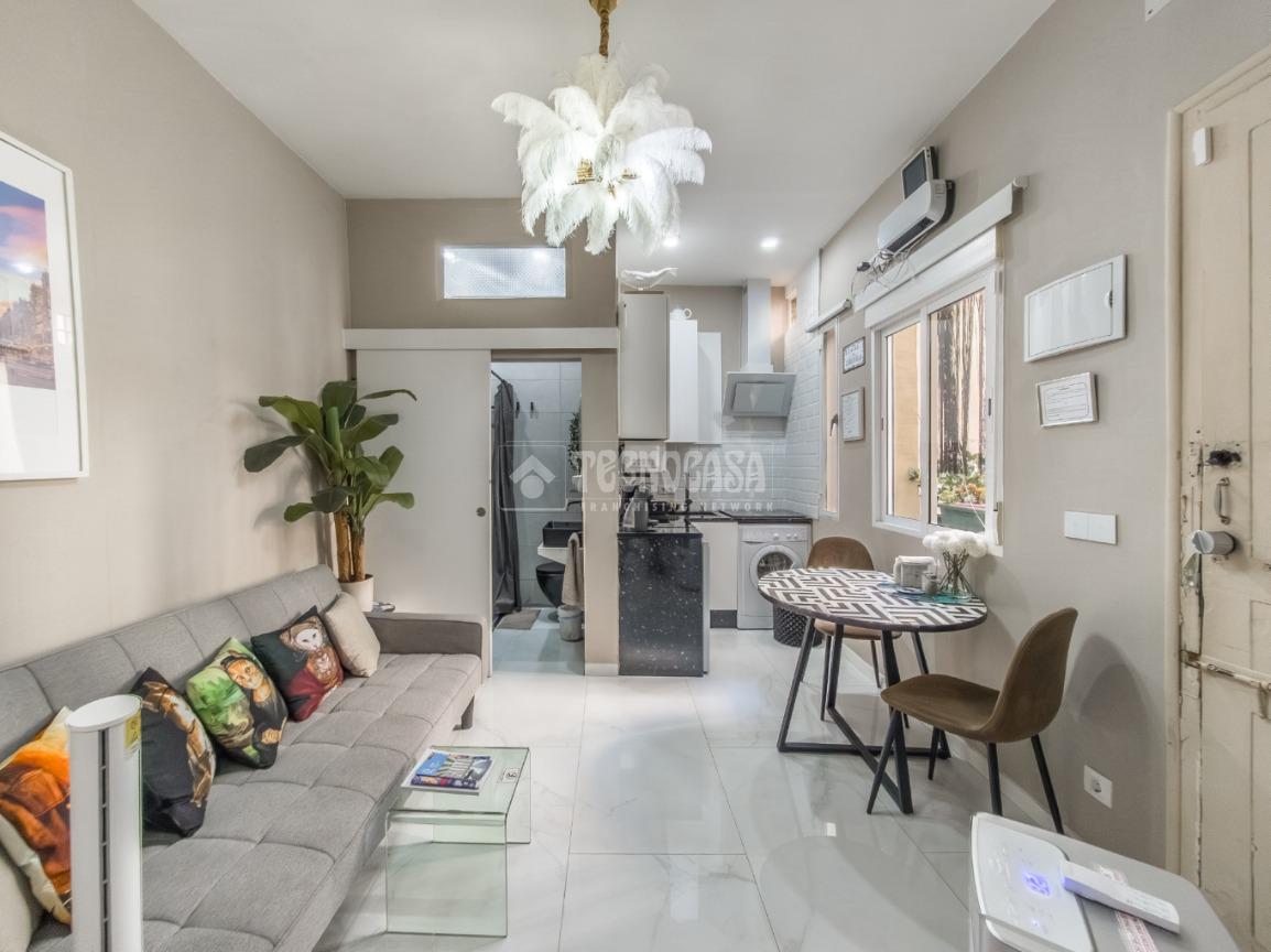 En la entrada nos encontramos con el salón - cocina de la vivienda tiene una ventana amplia con vistas al patio interior de la finca, generando luminosidad a la vivienda.