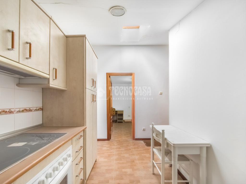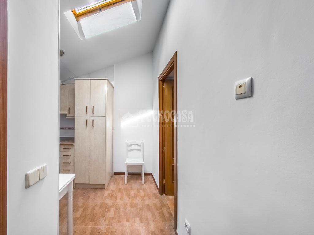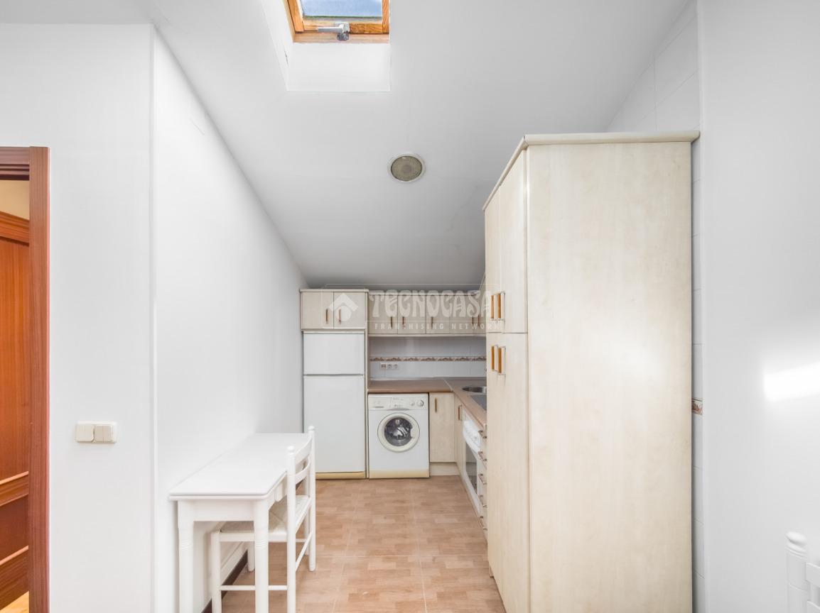 En la entrada nos encontramos con el salón - cocina de la vivienda tiene una ventana tipo velux generando mucha luminosidad a la vivienda.