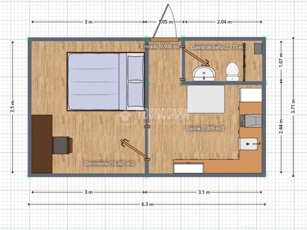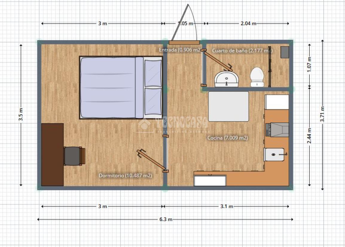 La vivienda consta de un dormitorio, amplio con zona para estudio o teletrabajo.